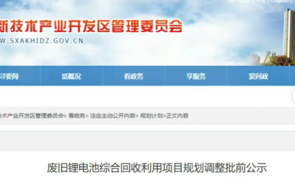 时间: 2026-01-30投资8亿元!陕西安康废旧锂电池回收项目公示