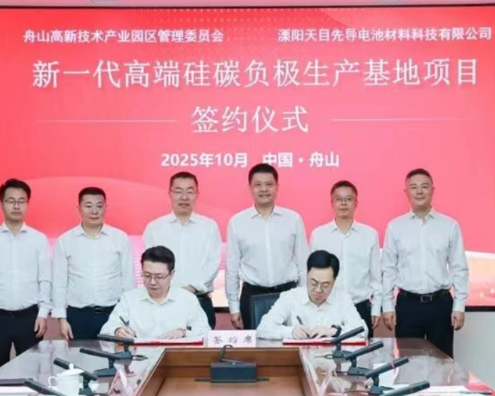 10月18日上午,溧阳天目先导电池材料科技有限公司(简称:天目先导)与浙江舟山高新技术产业园区正式签署协议,建设新一代高端硅碳负极材料生产基地项目。