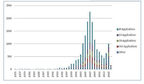 截至2018年,丰田汽车已在21个国家和地区、2个国际知识产权组织申请了15867件与燃料电池相关的专利,专利申请集中在2004到2009年;