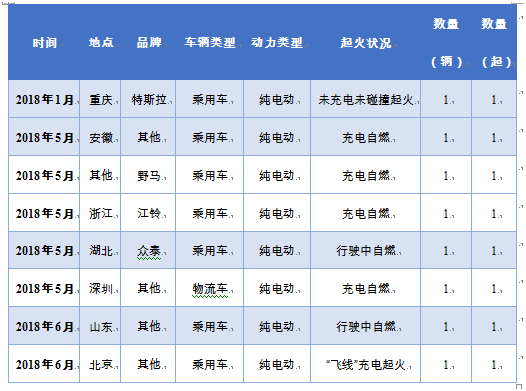 据公开资料显示,2018年上半年(1-6月)新能源电池车国内共发生8次起火事故,与2017年基本持平,其中5月之后的事故占7起,说明新能源汽车起火主要集中在夏季。
