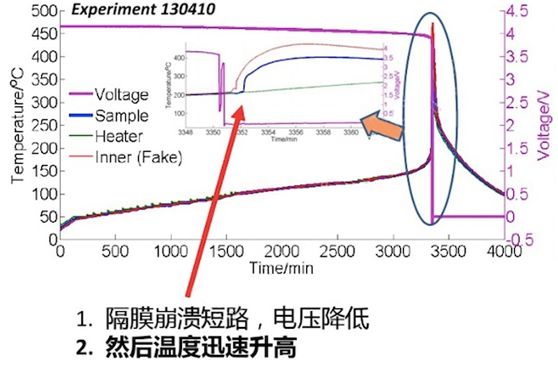 热滥用一般多为外部环境高或者在温度控制系统不起作用下导致的电池热量过高从而造成的短路,从而引发热失控。