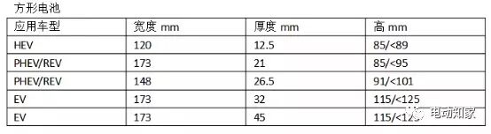 VDA标准已经在欧洲经过了多年的认证,在宝马、大众等品牌上已得到广泛的应用。VDA标准定义了方形电池、圆柱电池以及软包电池对应不同类型电动车的尺寸要求,车型包括HEV(混合动力)、PHEV(插电式混合动力)以及EV(纯电动车)。
