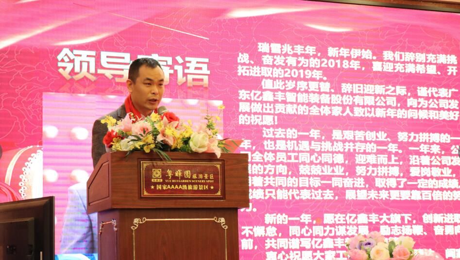 2月23日,广东亿鑫丰智能装备股份有限公司迎春晚会在粤晖园“月湖居大酒楼”隆重举行,精彩的节目给大家带来了无尽的惊喜与感动,领导的发言更是让亿鑫丰人信心百倍。