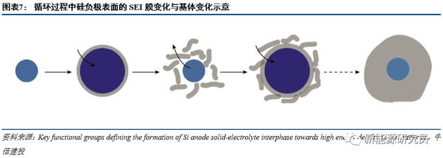 除了硅本征体积变化这一物理层面的挑战之外,硅单质还面临着和电解液接触、反应,形成固体电解质膜(SEI)的问题。