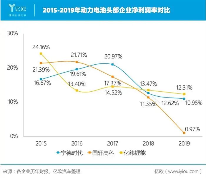 当下,同等级别车辆的新能源汽车售价普遍高于燃油车,这主要因为电池成本过高。根据行业专家透露,一台新能源汽车成本构成中动力电池成本约占据30%-40%。随着中国新能源汽车补贴下降,降本压力也会随即传导给动力电池企业。2015-2019年,中国动力电池头部企业的净利润率逐渐下滑,退补影响可见一斑。