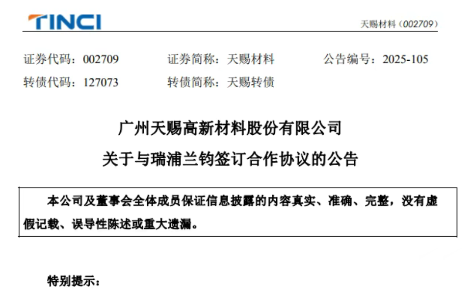 9月22日,天赐材料(002709)发布公告,公司全资子公司九江天赐与瑞浦兰钧(00666.hk)签订了《合作协议》。