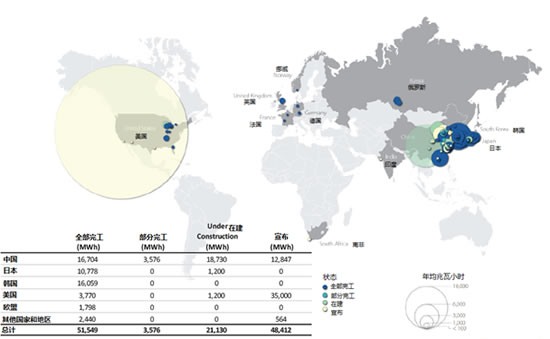 注:该地图中包含已完工、部分完工、在建和宣布的工厂。未包含所有工厂的产能。