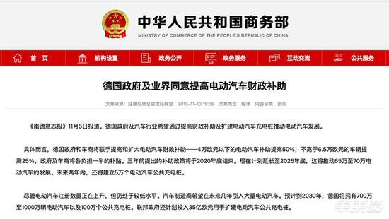 就在中国新能源车补贴退坡落地、美国补贴政策结果未定的时候,德国选择了提高对电动汽车的财政补助。