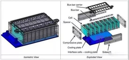 下图是奥迪2014年的一个PHEV2的模块设计概念图,匹配液冷板的设计,从爆炸图可以看到上面看不到的一些内部结构。
