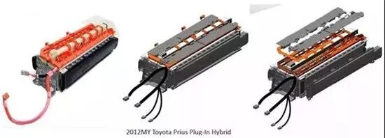 接下来是2012MY丰田普瑞斯PHEV电池模块,采用线束(现在来看这种线束的采集方式,感觉在有些场合下是十分麻烦的,存在隐患)来采集cell信息,也是采用螺栓的连接方式,不过增加了橙色的部分进行保护。
