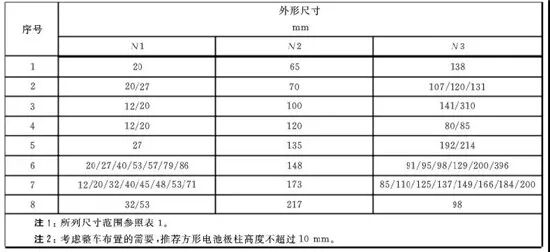 说到这里,不能不提一下2017年7月颁布,今年2月正式实施的国家推荐标准《GB/T 34013-2017 电动汽车用动力蓄电池产品规格尺寸》,其中针对方形电池,给出了8个系列的尺寸,如下图和下表所示。