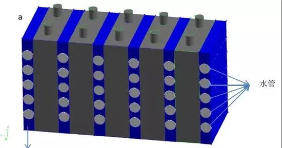 另外,也有方案,将导热材料与水冷相结合,让水冷系统把导热材料吸收过来的热量传递到系统外部去,其形式如下图所示: